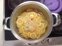 Boil one liter of water and add the chopped lemon and squeezed garlic. |