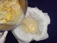 Squeeze it a little bit to drain it better. |